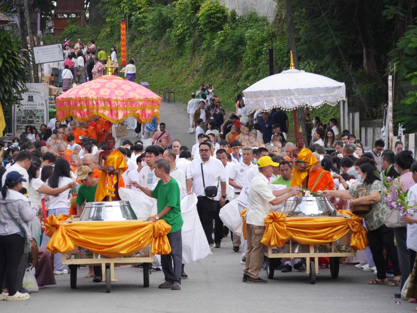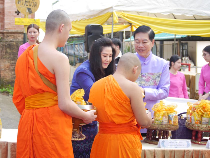 พิธีครั้งนี้นำโดย พระรัตนมุนี ที่ปรึกษาเจ้าคณะจังหวัดเชียงราย พร้อมพระสงฆ์และสามเณร จำนวน 111 รูป ออกรับบิณฑบาตร ประชาชนต่างตั้งจิตอธิษฐานตามความปรารถนา ถือเป็นบรรยากาศที่อบอุ่นศรัทธาและเต็มไปด้วยแรงศรัทธาทางพระพุทธศาสนา