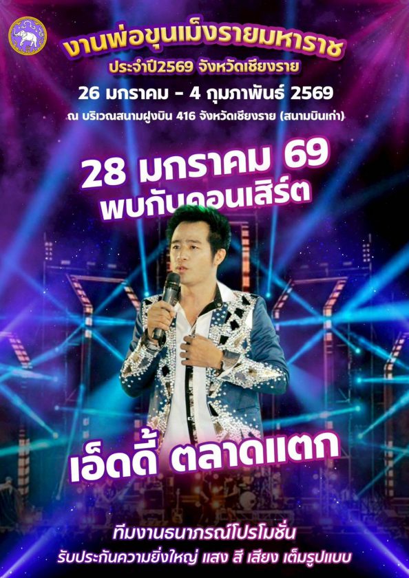 ขอเชิญพี่น้องชาวเชียงรายและนักท่องเที่ยว มาสนุกกับความบันเทิงสุดยิ่งใหญ่