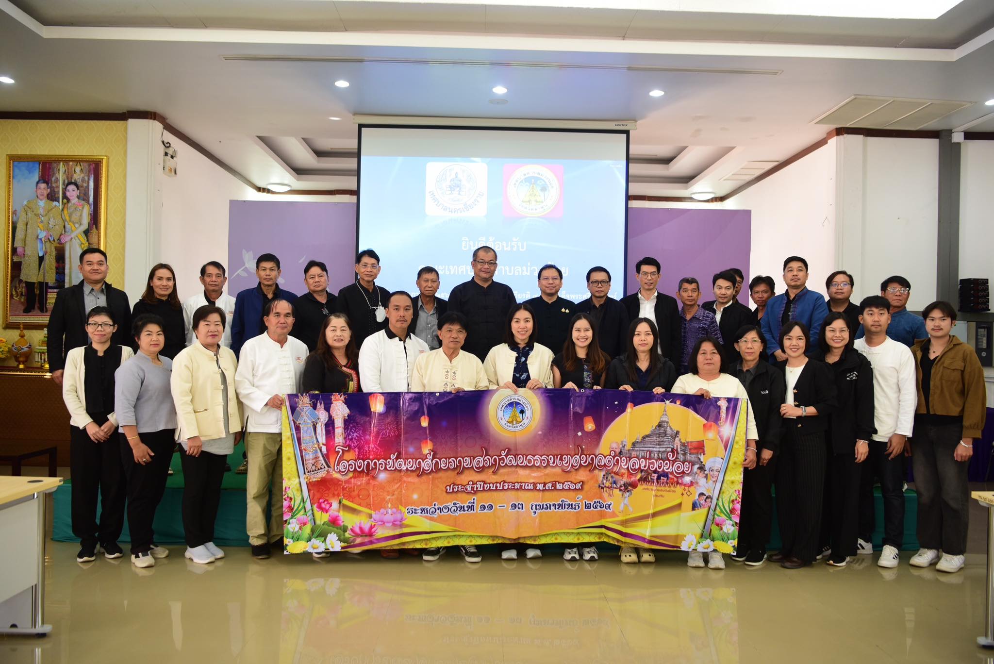 วันที่ 13 กุมภาพันธ์ พ.ศ. 2569 เทศบาลนครเชียงราย โดย นายวันชัย จงสุทธานามณี นายกเทศมนตรีนครเชียงราย มอบหมายให้ ดร.จตุรัฐชัย จินตนาสิทธิคุณ รองปลัดเทศบาลนครเชียงราย รักษาการปลัดเทศบาลนครเชียงราย พร้อมด้วย ว่าที่ร้อยตรีบุญญฤทธิ์ อายุยืน รองปลัดเทศบาลนครเชียงราย พ.จ.อ.ณัฐศรัณย์ อินแสนสืบ หัวหน้าสำนักปลัด นายประพันธ์ ช่างแก้ว เลขานุการเทศบาลนครเชียงราย นางนัยา อินทจักร์ ผู้อำนวยการกองการเจ้าหน้าที่ ตลอดจนข้าราชการและเจ้าหน้าที่ ให้การต้อนรับ นายเสกสรร ลังกาพินธ์ นายกเทศมนตรีตำบลม่วงน้อย และคณะที่ปรึกษา รวมถึงคณะกรรมการสภาวัฒนธรรมเทศบาลตำบลม่วงน้อย ในโอกาสเดินทางมาศึกษาดูงานด้านวัฒนธรรมและแหล่งท่องเที่ยวในเขตเทศบาลนครเชียงราย