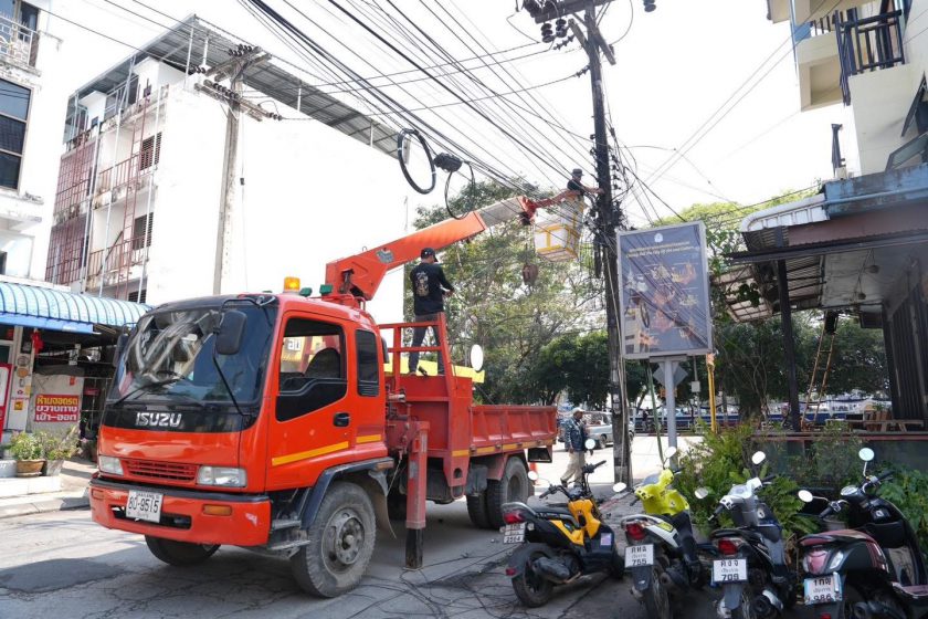 การไฟฟ้าส่วนภูมิภาค–เทศบาลนครเชียงราย รื้อเสาไฟและสายสื่อสาร