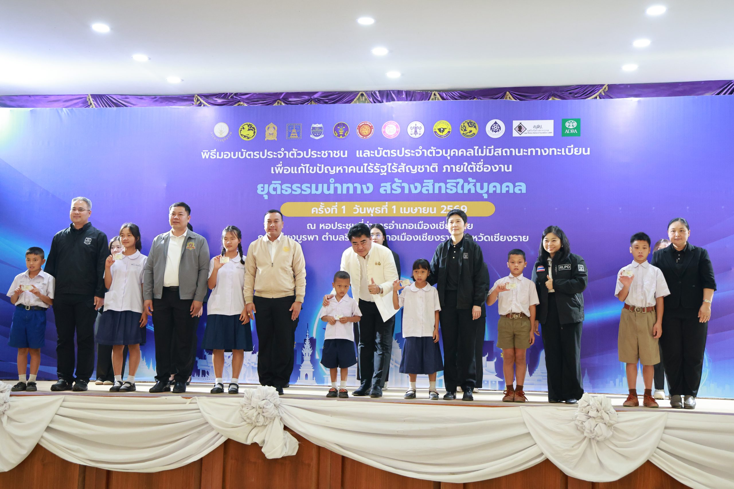 วันที่ 1 เมษายน 2569 ที่หอประชุมที่ว่าการอำเภอเมืองเชียงราย กรมคุ้มครองสิทธิและเสรีภาพ ร่วมกับจังหวัดเชียงราย จัดพิธีมอบบัตรประจำตัวประชาชน และบัตรประจำตัวบุคคลที่ไม่มีสถานะทางทะเบียน ภายใต้โครงการ “ยุติธรรมสร้างสุข สร้างสิทธิ์ให้ทุกคน” ครั้งที่ 1 เพื่อช่วยเหลือกลุ่มคนไร้รัฐไร้สัญชาติให้เข้าถึงสิทธิขั้นพื้นฐานอย่างเท่าเทียม