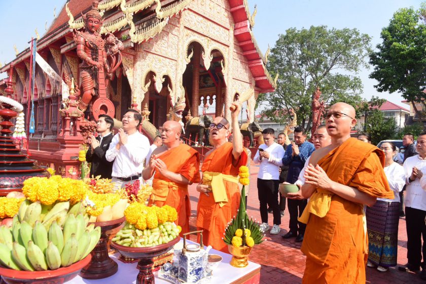 พิธีดังกล่าวมีพระรัตนมุนี ที่ปรึกษาเจ้าคณะจังหวัดเชียงราย และพระครูประพัฒน์รัตนพงศ์ เจ้าอาวาสวัดเชียงยืน เป็นผู้นำประกอบพิธี โดยวัดเชียงยืนถือเป็นวัดเก่าแก่และเป็นศูนย์รวมจิตใจของชุมชนสันโค้งหลวงมาอย่างยาวนาน