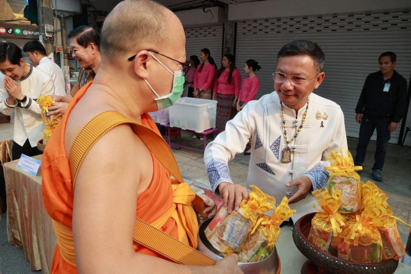 วันที่ 13 เมษายน 2569 นายชูชีพ พงษ์ไชย ผู้ว่าราชการจังหวัดเชียงราย พร้อมด้วย นายวันชัย จงสุทธานามณี นายกเทศมนตรีนครเชียงราย ร.ต.อ.ธนรัช จงสุทธานามณี สส.เชียงราย เขต 1 นำหัวหน้าส่วนราชการ ผู้บริหารเทศบาลนครเชียงราย และพี่น้องประชาชน ร่วมทำบุญตักบาตรพระสงฆ์ จำนวน 74 รูป เนื่องในวันสงกรานต์ หรือวันปี๋ใหม่เมือง ณ บริเวณสี่แยกสุริวงศ์ ถนนธนาลัย อำเภอเมือง จังหวัดเชียงราย